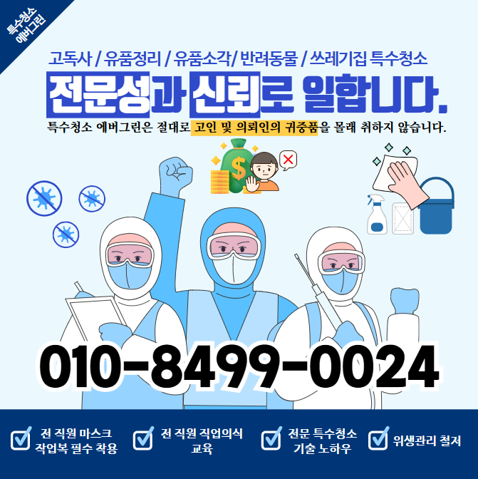 조성명 구청장은 "주민들과 함께 만들어가는 따뜻한 공동체가 목표"라고 밝혔습니다. 에버그린도 강남구의 이러한 비전에 발맞추어, 전문 청소 서비스로 주민들의 삶의 질 향상에 이바지하고자 합니다. 특수청소가 필요하신 분들은 365일 24시간 에버그린으로 연락해주시기 바랍니다. 첫 상담에서는 고객님의 상황과 요구사항을 꼼꼼히 파악하며, 현장 방문을 통해 작업 범위, 소요 시간, 필요 인력, 폐기물 양, 주변 여건 등을 세심하게 확인한 후 정확한 견적을 안내해 드립니다. 긴급 청소와 야간 작업도 가능하며, 의뢰인의 개인정보는 철저히 보호됩니다. 분리수거부터 실내 청소, 방역 작업까지 전문적인 서비스를 제공하며, 작업 후에는 철저한 품질 점검으로 만족도를 높입니다. 강남구 주민 여러분의 쾌적한 주거환경을 위해, 에버그린이 최고의 서비스로 함께하겠습니다. 지금 연락 주시면 상황에 맞는 최적의 청소 방안을 제시해 드리겠습니다. 여러분의 다양한 청소 걱정은 저희가 다 해결해드릴테니 24시간 내내 상담 가능합니다. 언제든지 연락주세요. 감사합니다!