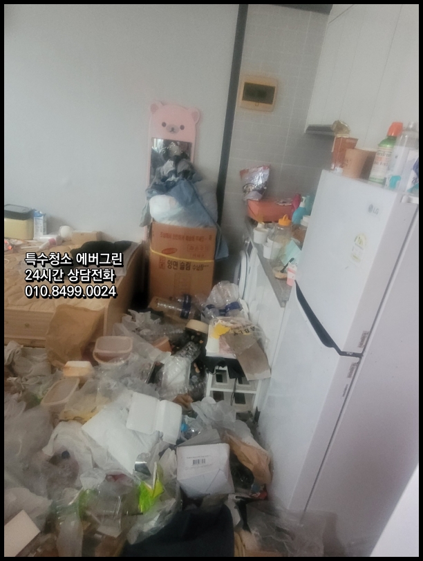 안녕하세요, 특수청소 에버그린입니다. 오늘은 용인시 처인구 유림동의 쓰레기집 청소 사례를 통해 전문적인 특수청소의 중요성과 과정에 대해 말씀드리고자 합니다. 이번 현장은 협의한 견적을 벗어난 자원봉사 서비스까지 진행했어요. 고객의 마음을 읽은 에버그린의 특별한 배려라고 볼 수 있어요. 그냥 고객님이 잘 됐으면 해서 할 수 있는 만큼의 배려를 했습니다. 현대 사회에서 쓰레기집 문제는 개인의 건강과 지역 사회의 환경에 심각한 영향을 미치고 있습니다. 특히 주거 밀집 지역에서는 이웃 간의 관계와 삶의 질에도 직접적인 영향을 주고 있어 전문적인 해결이 필요한 상황입니다. 악취와 해충 문제는 물론, 거주자의 신체적, 정신적 건강까지 위협하는 이 문제는 전문가의 체계적인 접근이 반드시 필요합니다. 특히 최근에는 1인 가구의 증가와 사회적 고립 현상으로 인해 이러한 문제가 더욱 심각해지고 있는 실정입니다.