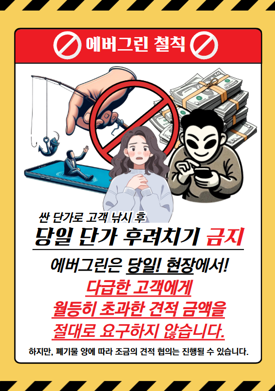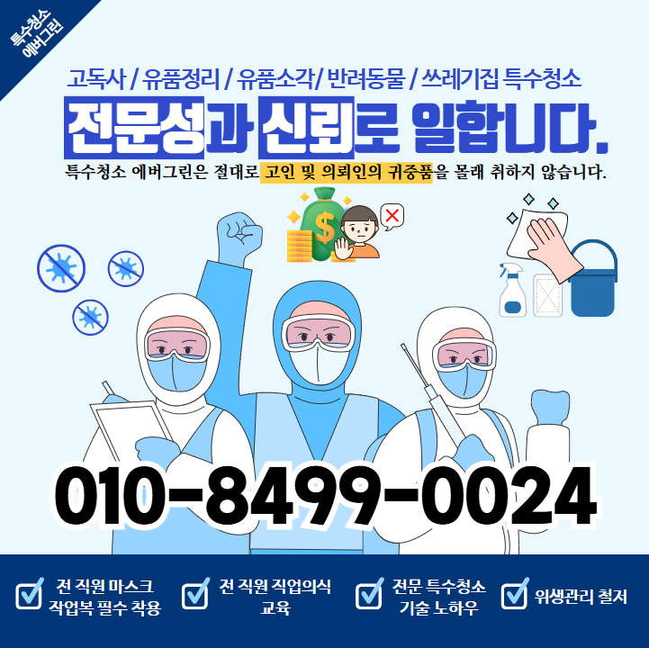 이와 관련하여 저희 에버그린은 이러한 전문적인 특수 청소 서비스를 연중무휴 24시간 제공하고 있으며, 서비스 비용은 각 현장의 특성을 고려한 맞춤형 견적으로 산정해드립니다.