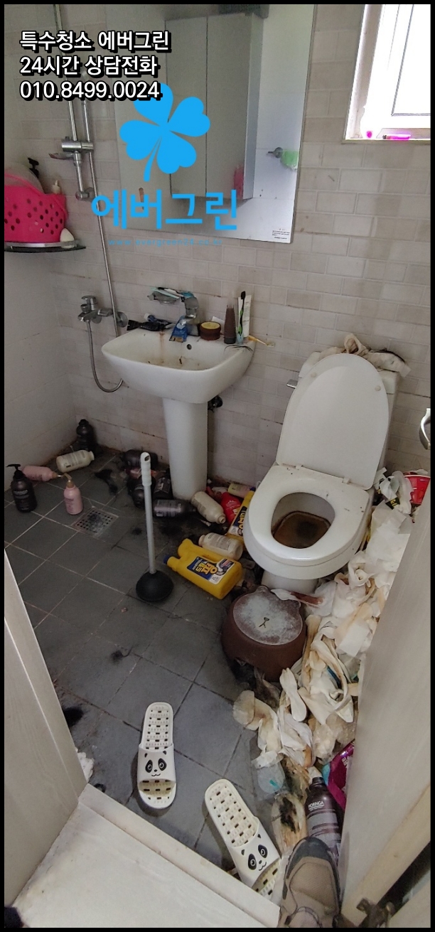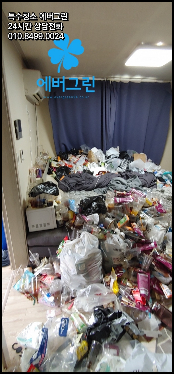 안녕하세요. 특수청소 에버그린입니다. 오늘은 경기도의 한 투룸 주택에서 진행한 특수청소 현장 이야기와 함께, 저희 에버그린의 세심한 서비스를 소개해드리고자 합니다. 지난주 경기도의 한 투룸 주택에서 진행된 특수청소 현장은 거주가 어려울 정도로 환경이 악화된 상태였습니다. 현관문 앞부터 쌓인 쓰레기로 출입이 힘들었고, 집 안에는 각종 생활 쓰레기와 썩어가는 음식물이 발목 높이까지 쌓여있었습니다. 화장실은 하수구가 막혀 오염물이 넘쳐흘렀고, 벽과 천장은 습기가 스며들어 색이 바랬으며, 주방의 싱크대 주변은 썩은 음식 냄새가 코를 찔렀습니다. 저희 에버그린은 이 공간을 차근차근 정리하고 깨끗이 복원했습니다. 일본, 독일, 미국에서 들여온 품질 좋은 세정제와 직접 만든 전용 세척제로 오염을 제거했고, 필요한 도구로 막힌 배수관을 뚫었으며, 벽의 곰팡이는 안전한 약품으로 말끔히 지웠습니다. 쓰레기는 종류별로 꼼꼼히 나누어 처리했고, 다시 쓸 수 있는 물건은 따로 모아 재활용했습니다. 이번 청소에서 가장 중요했던 것은 꼼꼼하고 체계적인 작업 방식입니다. SBS '그것이 알고싶다', KBS '더보기', KBS '시사기획 창' 등에서 인정받은 저희의 경험과 기술이 이번에도 빛을 발했습니다. 특히 저희가 직접 개발한 세정제로 반려동물의 배설물과 털, 냄새는 물론 쥐가 남긴 흔적까지 말끔히 치울 수 있었습니다.