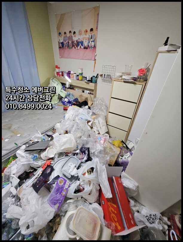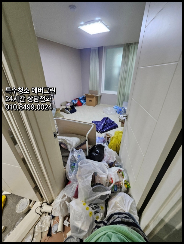 독립 손해사정사 및 행정사와의 협업을 통해 보험 처리와 행정 절차까지 원활하게 진행해드립니다. 이번 설 연휴 기간에 진행된 원룸 또는 아파트 쓰레기집 청소 현장은 깨끗한 구역과 오염된 구역이 명확히 구분된 곳이었습니다.
