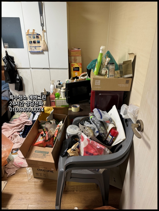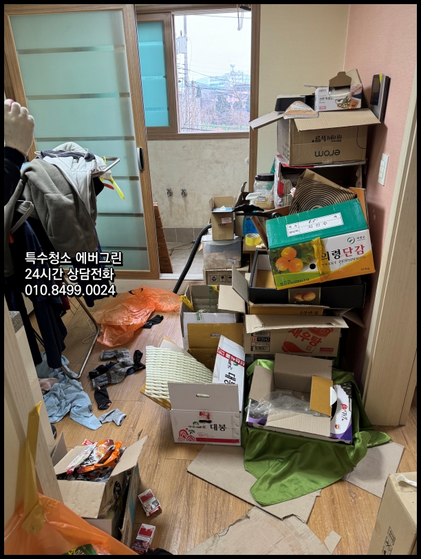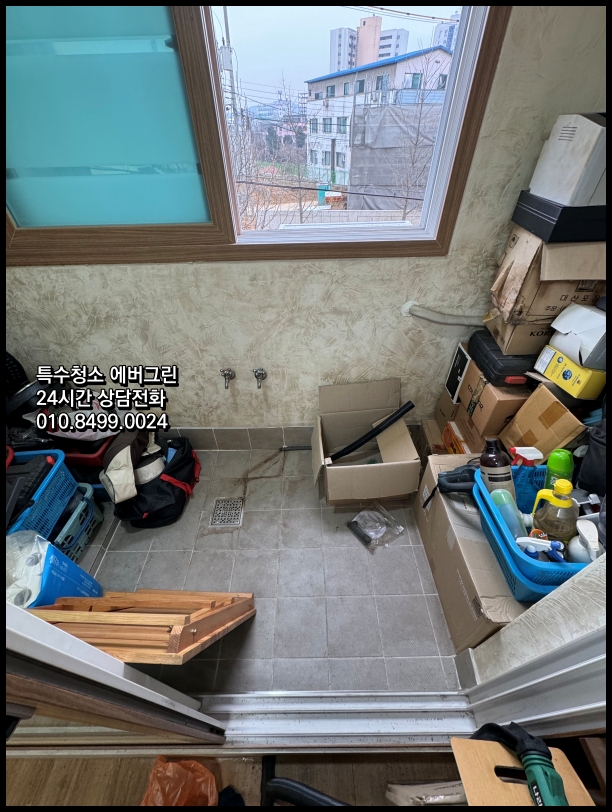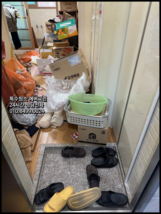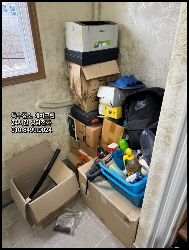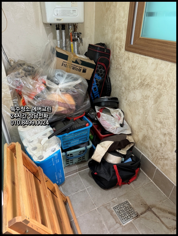 저희 에버그린이 최근 맡은 서울 시내 현장에는 주거공간 전체를 가득 메운 종이박스가 있었습니다. 바닥이 보일 듯 말 듯한 상황이었으나, 저희의 전문 기술로 해결할 수 있는 상태였습니다. 이 현장에서는 특히 화장실과 베란다 타일의 찌든 때가 가장 큰 문제였습니다. 수년간 쌓인 때를 제거하기 위해 저희만의 특수 세정제와 전문 도구를 활용했고, 꼼꼼한 작업 끝에 본래의 색을 되찾을 수 있었습니다.