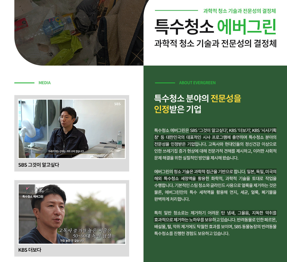 중앙정부와 전라남도 역시 무안스포츠파크 실내체육관과 도청 만남의 광장에 각각 합동분향소를 설치해 매일 오전 8시부터 오후 8시까지 추모객을 맞이하고 있습니다. 향후 강남구는 지속가능한 백년대계의 도시로 거듭나기 위한 정책을 더욱 강화할 예정이며, 저희 에버그린 또한 이러한 도시 발전의 흐름에 맞추어 한층 더 전문적이고 섬세한 서비스를 선보이겠습니다. 급변하는 도시 환경 속에서 주거공간의 위생과 쾌적함이 갖는 중요성은 날로 커지고 있으며, 저희는 축적된 전문성과 확고한 신뢰를 바탕으로 고객 여러분의 기대에 부응하겠습니다. 365일 24시간, 강남구 주민들의 쾌적한 주거환경을 위해 저희 에버그린이 함께하겠습니다. 전문 상담원이 특수청소와 쓰레기집 청소에 대해 친절히 안내해 드리고 있으니, 언제든 문의해주시기 바랍니다. 마지막으로 저희 에버그린 임직원 일동은 항공기 사고 희생자분들의 명복을 삼가 빌며, 유가족분들께 깊은 위로의 마음을 전합니다.