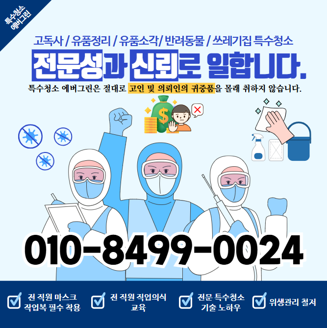 우리나라에서도 양극성장애, 외상후스트레스, 공황장애, 적응장애 등 복합적 정신건강 문제에 대한 종합적인 연구와 지원이 필요합니다. 전문가들은 이 문제를 주거환경 관리 실패가 아닌, 번아웃, 우울, 트라우마 등 다양한 현대사회 병리 현상의 결과물로 보아야 한다고 지적합니다. 현재 대한민국 청년들의 쓰레기집 문제는 심각한 사회적 경고신호입니다. 취업 실패, 빈곤, 외로움, 정신건강 악화 등 복잡한 사회 문제들이 이들의 생활을 피폐하게 만들고 있습니다. 이는 개인의 나태함이 아닌, 현대 사회의 구조적 모순이 만들어낸 결과입니다. 에버그린은 앞으로도 송파구를 거점으로 서울과 수도권 지역의 전문 특수청소 서비스를 제공할 것을 약속드립니다. 쓰레기집 청소가 필요하신 분들은 언제든 연락 주시기 바랍니다. 24시간 문의 가능합니다.