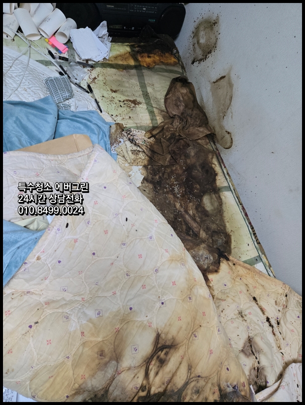 차례상을 차리던 중 홀로 돌아가신 고인의 현장은 우리 사회의 단면을 보여주는 충격적인 사례였습니다. 고층 아파트에서 발견된 현장에는 부패한 식자재들과 변질된 음식들, 그리고 쌓여있는 라면 포장과 소주병들이 발견되었습니다. 특히 말라 죽은 화분들은 고인의 외로운 삶을 상징적으로 보여주었습니다. 저희는 고인의 주검이 발견된 현장의 장판과 벽지를 모두 철거하고 과학적 악취 탈취 장비 중 하나인 오존 발생기를 가동하여 악취를 탈취하는 과정을 작업했습니다.