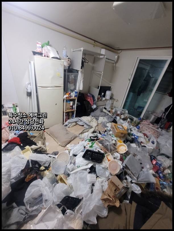 안녕하세요, 특수청소 에버그린의 현장 보고서입니다. 저희는 수도권 쓰레기집 전문 청소업체 특수청소 에버그린입니다. 최근 경기도 안양시의 한 원룸에서 진행한 청소 경험을 나누고자 합니다. 저희는 서울과 인천 그리고 경기도 안양을 중심으로 쓰레기집 청소를 진행합니다. 이번에능 안양의 한 지역의 원룸 쓰레기 집 청소를 진행한 내용을 쓴 것입니다. 새벽에 쓰레기 집 청소를 진행했습니다. 어떤 내용인지 한 번 보시죠.