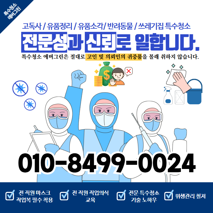 1. 전문 청소 서비스의 체계적 접근하여 특수청소 완료.