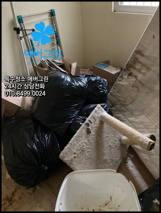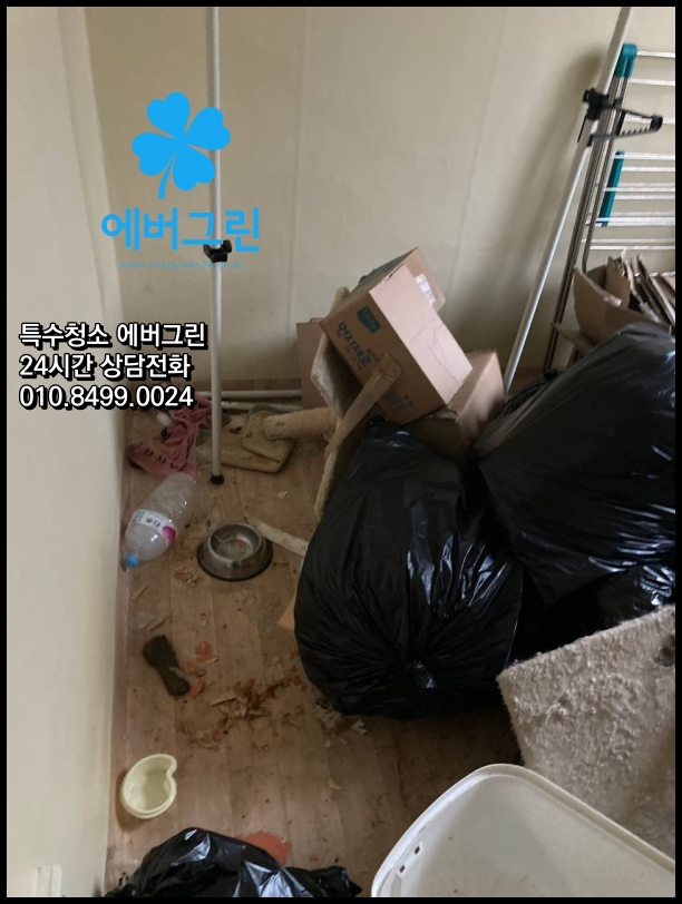 SBS 동물농장이 인정한 저희 특수청소 에버그린이 수원시 아파트에서 진행한 작업 사례를 말씀드릴게요. 저희는 법인기업으로서 실내건축업 자격증과 건물위생업, 소독업 신고증을 갖추고 있어 전문적인 청소가 가능합니다.