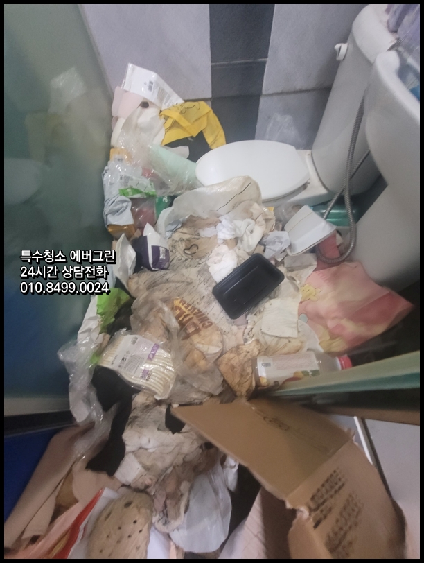 아래 사진은 청소 전의 사진입니다. 화장실부터 침실까지 모두 쓰레기로 꽉 차 있었어요.