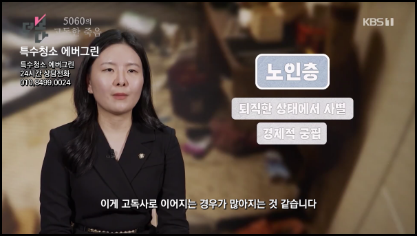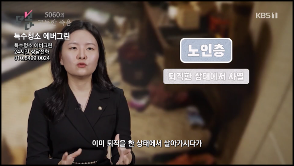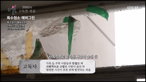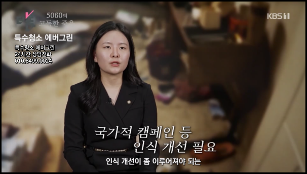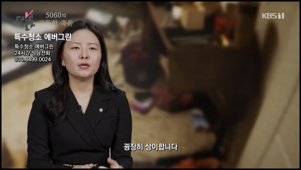 더 나은 생활 공간을 위한 특수청소 전문기업 에버그린입니다! 안녕하세요. 특수청소 전문기업 에버그린입니다. 최근 KBS '더보다'의 고독사 청소 특집과 SBS '그것이 알고싶다'의 쓰레기집 편에 출연하며 주목받은 저희 업체는 특수청소 분야에서 새로운 기준을 제시하고 있습니다. 특히 고독사와 쓰레기집이라는 현대 사회의 그림자와 마주하며, 전문적인 청소 서비스를 통해 사회문제 해결에 동참하고자 노력하고 있습니다. 오늘은 저희 서비스의 특징과 사회적 의미에 대해 상세히 설명해 드리고자 합니다.