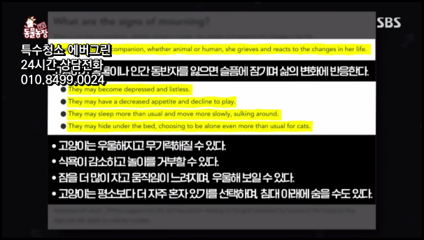 안녕하세요. 특수청소 에버그린입니다. 반려동물과 함께 생활하는 가정이 늘어나면서 전문적인 환경 관리의 중요성이 날로 커지고 있습니다. 오늘은 SBS 동물농장 1199회를 통해 소개된 저희 에버그린의 반려동물 특수청소 서비스에 대해 상세히 설명해드리고자 합니다. 고양이의 스트레스성 행동 변화와 그에 따른 주거 환경 문제를 과학적으로 해결한 사례를 통해, 전문 특수청소의 필요성과 해결 방안을 공유하겠습니다.