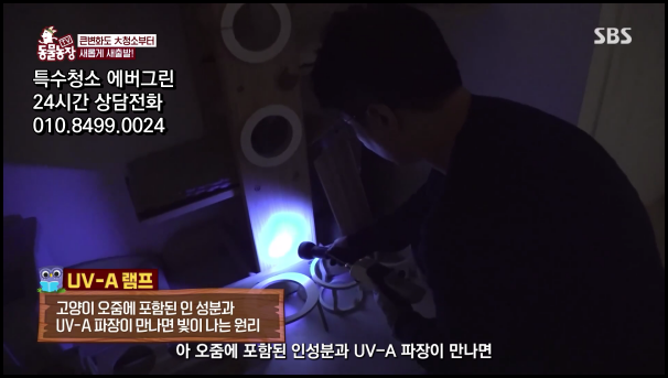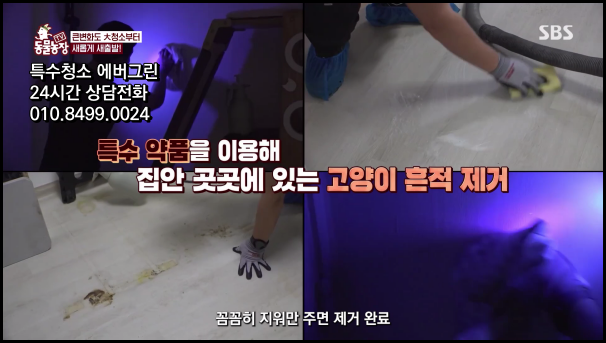 저희 에버그린은 이번 SBS 동물농장 1199회를 통해 특수청소의 새로운 지평을 보여드렸습니다. 방송에서는 한 달간 옷장 속에서 나오지 않던 반려묘 크림이의 사연이 소개되었습니다. 보호자 부부 중 남편 분의 부재로 인한 상실감과 다른 고양이들과의 영역 다툼으로 극심한 스트레스를 겪던 크림이의 문제 상황을 저희 에버그린의 전문적인 특수청소로 해결할 수 있었습니다. UV A파장 특수 조명을 활용한 저희만의 독자적인 기술로, 육안으로는 발견할 수 없는 고양이의 영역표시를 정확하게 찾아내고 제거하는 작업을 진행했습니다. 이러한 과학적 접근은 일반 청소로는 불가능한 고양이의 페로몬과 각종 흔적을 완벽하게 정화하는 데 핵심적인 역할을 했습니다.